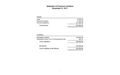 Your first financial statement can be created quickly, thanks to the intuitive and streamlined data entry interface in PFS Plus. Subsequent financial reports can be printed even faster because it is easy to modify archived data. Also, you'll feel confortable knowing that all your financial data is safely and securely saved in your password-protected file.