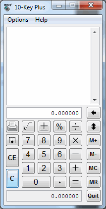 10-Key Plus will become indispensable as you begin to use it with all of your various programs. You no longer have to interrupt your work to add numbers on your desktop or handheld calculator. In addition, the results can be copied and pasted to your program, making traditional calculators a thing of the past. Print the contents of the tape to your Windows printer or save them for use later by printing them to a file. Once you start using 10-Key+, you will never want to use a desktop calculator again.